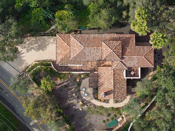 Clay tile roof, copper gutters, and mature landscaping complete the home, while the surrounding grounds invite peaceful strolls, al fresco gatherings, and a deep connection to Montecito's natural beauty.
