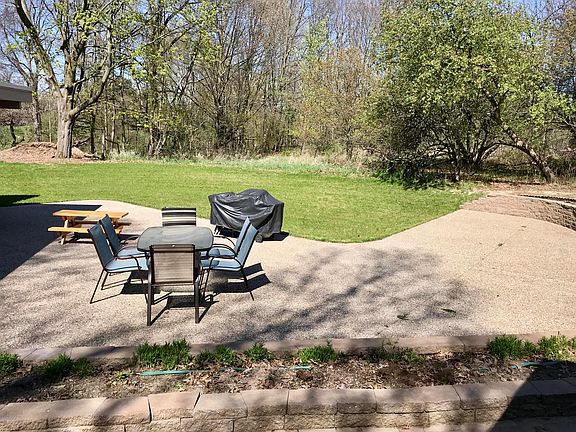 This great family home in a quiet, desirable neighborhood features over 2700 sq ft of finished living space with 4 (possibly 5) bedrooms, 2 full & 2 half baths and sets on a 1.34 acre wooded lot with a winding creek running through the property. Cathedral ceilings greet you as you enter the home and continue into the dining room with hardwood floors and floor-to-ceiling windows overlooking the wooded property. Spacious kitchen with large island and eat-in dining area gives plenty of room to gather. Beamed ceilings throughout the main level, a living area on one end of the home and family room w/ fireplace on the other. The lower level rec room could be used as 5th conforming bedroom. Outside, you'll enjoy the large backyard patio for entertaining or just admiring nature.