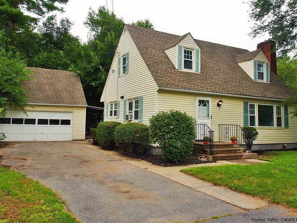 Great starter or right down sized home in Kingston area located on quiet residential dead end st. Just painted, 3 Bedroom, 2 Bath Cape Cod. First floor bedroom near main bath, kitchen, and glass enclosed rear porch. Spacious living room with wood burning brick fireplace, and large picture window. 2 Bedrooms and second bath on second level. Hardwood floors throughout. Eat in Kitchen, ceramic tile flooring complete this well built home. Small covered deck area for grill and gatherings. Detached 2 Car Garage. Walking distance to Chamber Elementary School. Convenient to shopping, dining, cinemas, historic uptown and Rondout areas of Kingston. Close to Routes 209 and Kingston Bridge for easy commuting. Renters consider purchasing this affordable home, mortgage payment vs. rental fees may be in your favor in this market. Investors take a look for rental income. Easy to show and preview.
