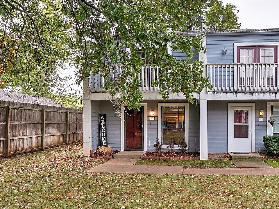 GATED Condo Community. Upstairs bedroom suite with HUGE walk-in closet, large bathroom, laundry room, and private balcony. Downstairs with kitchen, eating area overlooking courtyard, 1/2 bath and large family room. Reserved covered parking. Private fenced back yard area. Close to The Gathering Place and Riverside. Come see today.