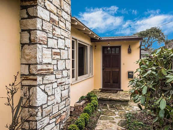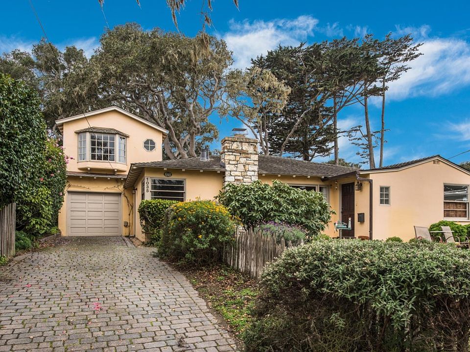 Located on a quiet cul-de-sac in the popular Beach Tract Pacific Grove neighborhood just across from the PG Golf Course with views of the Monterey Bay. Imagine relaxing in the serenity of this classic expanded California bungalow, surrounded by beautiful gardens and live oak trees. Open beam ceilings, oak floors and a stone fireplace add to its period charm. Entertaining your family and friends inside with the open layout, a newer kitchen with white cabinets, granite counter tops and stainless appliances, great floor plan boasting two bedrooms and two baths downstairs and a master suite upstairs. This layout offers a master downstairs and a private master suite upstairs with balcony. This charming refreshed three bedroom, three bath home is just off 17-Mile Drive and a short distance to everything Pacific Grove has to offer - from beaches and tide pools to golf, romantic ocean walks, and fine dining in town. Perfect full or part-time home.
