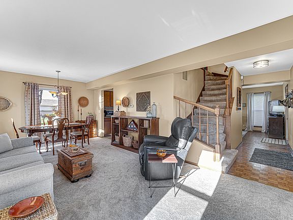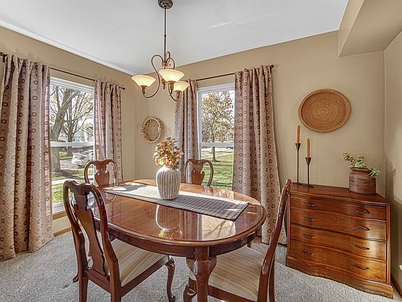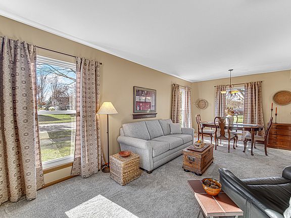 Don't miss out on this wonderful home on a beautiful corner lot. Clean and ready for new owner! Kitchen is open to the family room with cozy fireplace. Newer carpet throughout. Vaulted, primary bedroom w/lots of closet space including a walk in. Updated baths. 2nd floor laundry. Ceiling fans in all bedrooms. Extra shelving in 2 car garage. Large wrap aroound deck + shed in great yard! Replaced: siding, roof, furnace, carpet, garage door and opener, windows & driveway, stove, fridge & washer & dryer. Move right into this fabulous home. Just seconds away from the park. So much is offered here at a excellent price.
