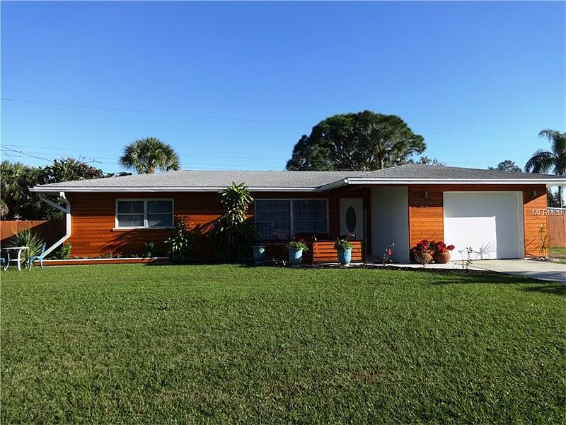 AWC - Taking Backup Offers Hurry to see the Best Value in South Venice under $150,000 before it's gone! Prepare to be amazed as you pull up to your one of a kind, absolutely stunning Western-Red Cedar lined Beach House. This solid block 2 bedroom, 1.5 bath beautifully renovated home sits on an extra large lot, perfectly landscaped with plentiful Hibiscus, Bougainvilleas, Alamanda, fruit trees, and surrounded by a freshly painted privacy fence. The list of 'NEW' goes on and on... New Kitchen Cabinets & Counters, All New upgraded light fixtures (inside & out), New Bathroom Vanities. New Pecan Laminate Wood Floors and Fresh Interior Paint complement throughout, from the light & bright Great Room and Bedrooms to the Stainless Appliances in the Kitchen, which has it's own breakfast/ coffee nook. The Florida Room is currently being used as an adorable his & her office, if you can concentrate on work with all of the sun that shines in there! Now get ready to be amazed once again as you step out to the private backyard, complete with a beautiful (and fun!) 2 level Deck that boosts a gorgeous hand crafted Pergola for your outdoor entertaining and enjoyment. South Venice is a unique beach community close to dining, shopping, medical, grocery, pharmacy, and charming Venice Island with it's many shops, restaurants and beaches & the famous legacy biking & hiking trail. The low (optional) HOA fee ($95/yr) provides unlimited ferry service across the turquoise intracoastal waters to your private beach, Welcome to Paradise!