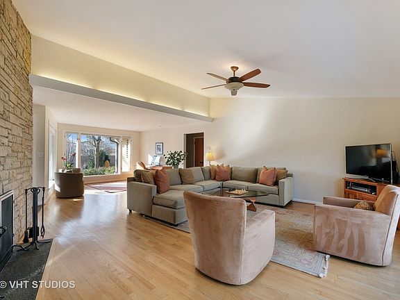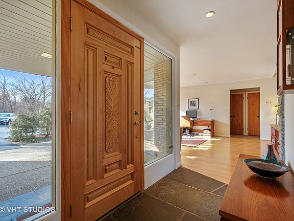Don't let the address fool you...Beautifully maintained mid-century modern Ranch set on .42 acres of PRIVATE serene property IN TOWN. An abundance of over-sized picture windows and high ceilings add natural light and volume to the spacious living and dining spaces. The open floor plan features hard wood floors and neutral paint throughout. The updated kitchen has new stainless steel appliances and built-in booth seating. There are three nice sized bedrooms, all with ample closet space, plus two additional hall closets for linens and storage. The master bathroom was recently renovated with a custom tile stand alone shower. Lots of additional living space in the finished basement with laundry & half bath. Two car attached garage with walk-up attic storage. Enjoy relaxing on the large back deck or patios overlooking the professionally landscaped yard. Short distance to downtown Highland Park or Ravinia and easy access to commuter trains and parks. Set back far from Green Bay Rd.