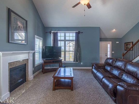 Stunning Rave Construction home in the desirable Harvest Pointe subdivision. This lovely home is only one year old and has a great floor plan. Amazing vaulted ceilings & a beautiful fireplace welcomes you when you step into the living room. Spacious eat-in kitchen with hardwood flooring, gorgeous granite countertops, backsplash & all stainless steel appliances. The master suite is located on the first floor and includes his & hers closets along with an amazing master bath. The second and third bedrooms are on the second floor, large rooms with a lot storage space! Large unfinished basement with a lot of potential and a great backyard with a patio outside of the sliding glass door. This is a MUST see!