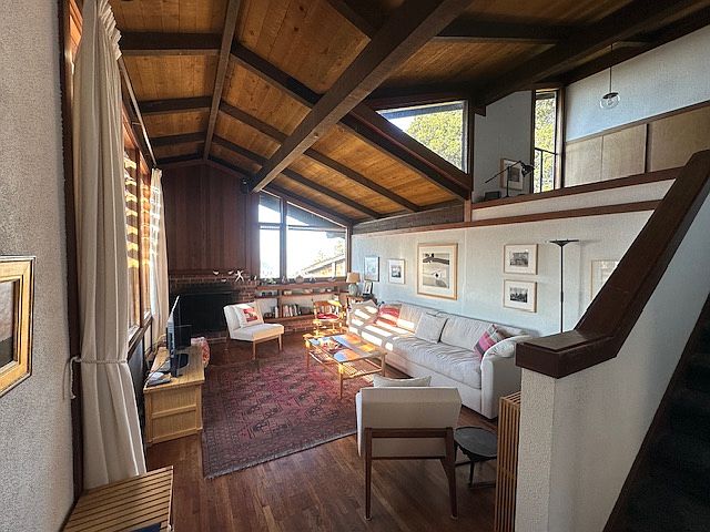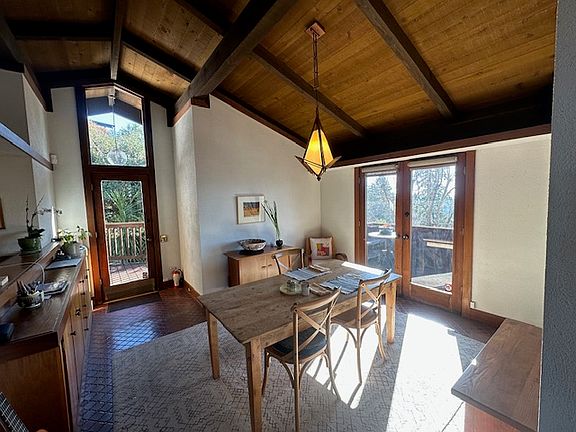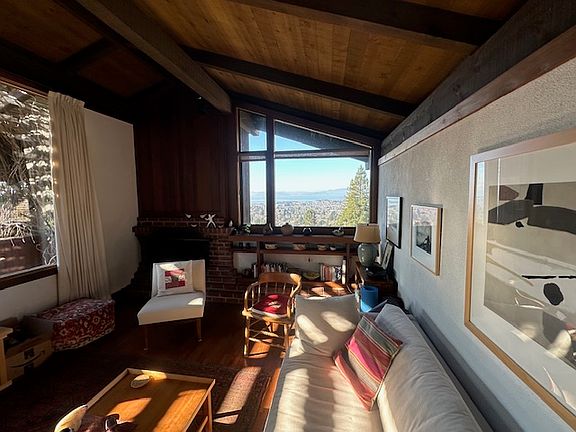 Exquisite 4 bedroom, 2 bath Mid-Century wood and glass view home with beamed ceilings and Japanese aesthetics. Set on two lots in a gorgeous garden, (upkeep paid by owner), this 4 level home is beautiful, private and serene. Views of the Bay, San Francisco, Oakland, Berkeley, and Emeryville can be seen from the living-room, dining-room and bedrooms, two of which have garden views. There are three decks: at the front of the house, dining-room/kitchen, and the master bedroom each having city and/or garden views. The kitchen has all stainless steel appliances and marble counter tops. Dishwasher, washer/dryer, microwave included. Hardwood floors. The house is a 4 minute drive or 20 minute walk to Campus and the same to Gourmet Ghetto, (Cheeseboard etc.) It is also half a block from two bus lines on Spruce and Euclid Streets. The Lease can be extended (preferably). Renters pay for Water (EBMUD) and gas and electricity( PG&E). Owner pays for garbage pick-up, and garden maintenance, including water. No pets, no smoking are allowed. Two off street parking spots A cleaning and damage deposit of $1000 will be included at the time of Lease.