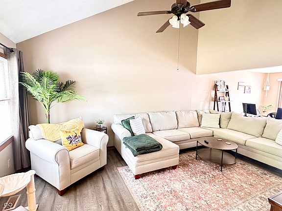 This Townhome located on a cul-de-sac is an attached single family home with no HOA r monthly dues. Tasteful updates include new vinyl plank flooring on the main level, freshly painted walls, new Roof, and garage door in 2023. Nicely sized family room feels even larger with the vaulted ceiling and large front window. Convenient kitchen includes stainless steel appliances and a pantry. There's a half bath on the main level too. The 2 roomy bedrooms upstairs sit on either side of the full bath with tiled flooring and vanity with lots of countertop space and storage. Primary bedroom has walk-in closet. Deck on the back of the home is big enough for BBQ's, gatherings, or just relaxing. Property/Lot line goes back to the fence.