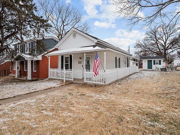 WELCOME HOME! Cute shotgun layout bungalow with wrap around porch with MANY UPDATES! Perfect for first time home buyer or investment property with prime location close to Lindenwood University, downtown historic St. Charles, Hwy 70 and 94. Brand new AC in 2019, New water heater 2022, New roof 2024, Renovated kitchen that is LARGE, beautiful granite countertops, center island with bar stools, new lower luxury cabinets. New luxury vinyl flooring in kitchen and bathroom all installed in 2024. Brand new carpet in living area and bedroom, 2025. Basement with washer and dryer. Attic space with storage. Additional storage shed and detached one car garage with garage door opener. Additional parking pad next to garage. Fenced in area in yard and large side yard. SO MANY WONDERFUL UPDATES AND LOCATION for you to make this your own MOVE-IN READY HOME!