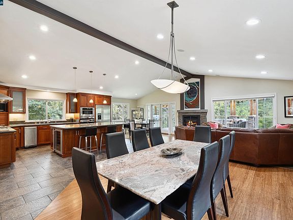 This stunning modern Happy Valley home showcases a breathtaking open floor plan that integrates well with a dramatic outdoor open-air pavilion and a lovely flat yard. A spectacular great room includes a gorgeous gourmet kitchen with walk-in pantry, spacious dining areas, and an inviting gathering space with vaulted ceilings and an impressive stone fireplace that illuminates and warms this beautiful living environment. With nearly 3,000± sq. ft., a main level primary suite retreat, three additional bedrooms, two full and one-half bathrooms, a wonderful media / bonus room, large laundry, and an abundance of storage, this is an unparalleled opportunity to own a very special home in a unique location . . . truly moments to everything Lafayette and Happy Valley School. Simply fabulous!