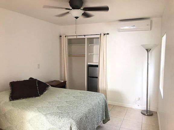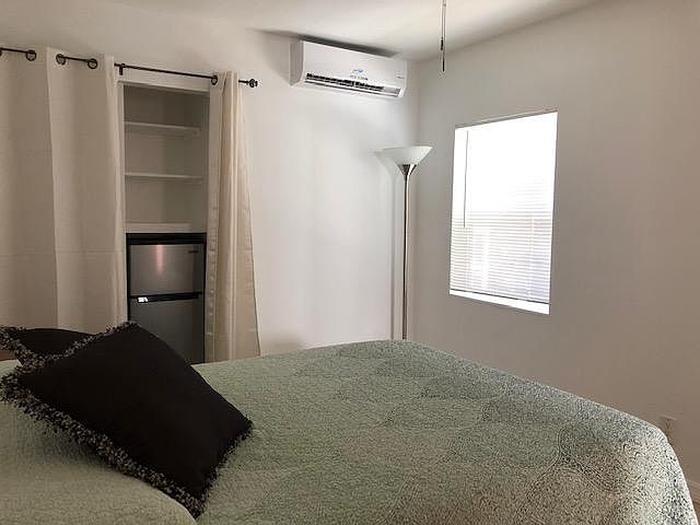 An ideal apartment for ONE PERSON who needs a cozy place away from home while working in the area or for an internship. Looking for one and very quiet person, no smoking and no pets. It is an EFFICIENCY of approximately 250 square feet with no range. Absolutely clean, with a quiet split AC unit, freshly painted, refrigerator, microwave, hot plate and toaster over. There's a full size bed box spring. The mattress showing in the picture is not there anymore. The rate of $1000/month included water and electricity. The landscaping is absolutely gorgeous Hurricane impact windows and doors. The moving cost is $2150 for the first month of $1000 + security deposit and cleaning fee. We will perform a background check for $35 The rate of $1000/month included water and electricity The moving cost is $2150 = first month of $1000 + security deposit $1000 + cleaning fee $150 Background check: $35 No smoking allowed, no pets allowed Parking available only for one car