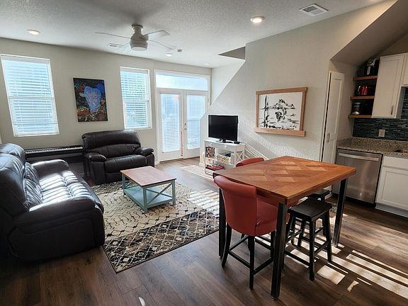 2020 2 bed/ 2.5 bath townhouse for rent. The open concept main floor kitchen includes stainless steel gas range, microwave, dishwasher and French door refrigerator. Off the living room is a large concrete patio and HOA maintained grass and landscaping. Upstairs you'll find two bedrooms, both with en suite bathrooms. The master bath has double sinks, an extra wide shower, and medicine cabinet. The laundry closet with included font load washer and dryer is also located on the upper level. There is an attached one car garage with driveway for additional parking. Granite counters throughout, upgrade flooring (tile, carpet, LVP), central A/C and ceiling fans in both bedrooms and living room. The Oak Steet light rail station is just a few blocks away with easy access to I-70 and Hwy 6. Sunset park one block away. Well behaved dogs will be considered with additional $200 nonrefundable deposit and a $25 per month/per dog fee. Available September 4th with a 12 month lease. Owner pays for water and garbage/recycling. Tenant pays for internet, cable, electricity, and gas. Includes washer/dryer, fridge, microwave, dishwasher, gas range/oven. Smoking not permitted. Refundable deposit due at signing, first month rent due on move-in date. Unit cannot be used for short term rentals.