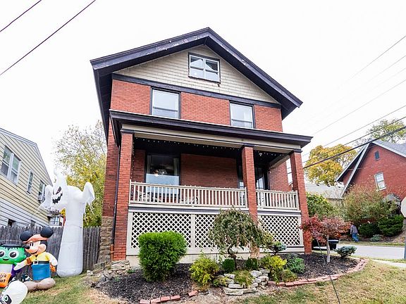 Cincinnati skyline view from front porch & backyard. Located across the street from Wiedeman Mansion. Brick 3 story home situated on corner lot. Freshly painted kitchen, new granite countertops, kitchen island, all appliances stay. Hardwood floors in LR, DR & office. French and pocket doors on 1st flr. 2nd floor offers 3 large bedrooms, 4th bedroom/study currently being used as closet. Spacious 3rd flr can be used as family room, workout room or office space. New roof, hot water heater & freshly painted fence. Great porch and patio for relaxing. Plenty of on street parking.