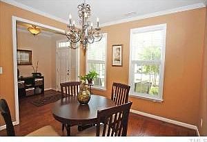 Custom built feel, Chapel Hill address, low Chatham County Taxes. Three story townhome with tons of upgrades, granite counters, wide plank hardwood flooring, Kitchen features tile backsplash, stainless steel appliances and oversized kitchen island. Bonus room wired for surround sound on completed third floor. N'hood features community pool, playground, basketball & tennis courts