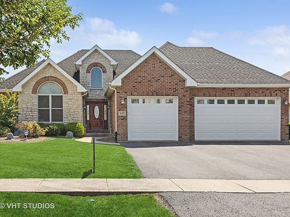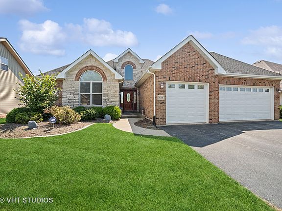 Custom built ranch home located in the very desirable Prairie Crossing Subdivision. Fenced backyard has beautiful views of the lake area which is a rare find in this market. 2 story foyer, great room with towering cathedral ceilings, fireplace with blower, California corners, open to large kitchen with hardwood floors, cherry cabinets, stainless steel appliances, center island, and table area. Sunroom with hardwood floors and patio doors leading to fenced backyard. Master bedroom with trayed ceilings and great views of the backyard over looking lake with multiple shade trees. Master bath with jetted tub, separate rainfall shower, and walk-in closet. The 2 bedrooms have the attached "Jack & Jill" bathroom. 1st floor laundry area with washer and dryer. Basement with 10' walls, roughed in bathroom, recent 2 stage furnace, tankless gas water heater, 200 amp service, and concrete crawl. Gas power generator, ADT "custom" security system, fenced backyard, large 3 car garage. Property is being sold "As Is". Come out and see this great home in a great location at a super price!!!!
