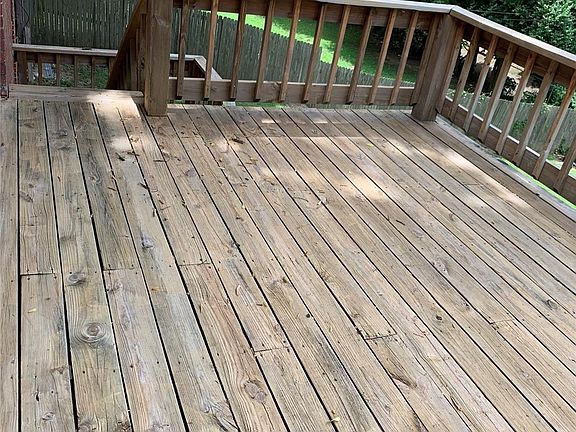 Brick home sets on a hill, has a walkout basement. Has living, dining, kitchen, one & a half bathrooms & a deck upstairs, down stairs has a large family room with fireplace, utility room, two bedrooms, one room under stairs that could be another bedroom or office, bathroom with shower, large back yard with a children's play set, a two car garage and a large front covered porch. (to be sold in as is condition)