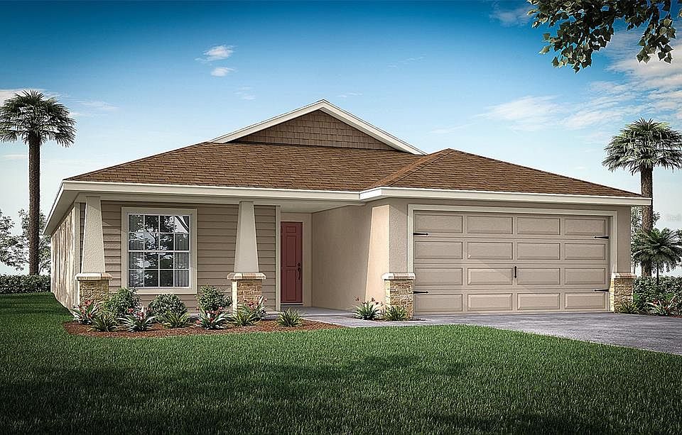 New construction home with 1715 square feet on one-story including 4 bedrooms, 2 baths, and an open living area. Enjoy an open kitchen, Samsung stainless steel appliances, a walk-in pantry, and a spacious island, fully open to the dining café and gathering room. The living area, laundry room, and baths include luxury wood vinyl plank flooring, with stain-resistant carpet in the bedrooms. Your owner's suite is complete with a walk-in wardrobe and a private en-suite bath with dual vanities, a tiled shower, and a closeted toilet. Plus, enjoy a covered lanai, 2-car garage, custom-fit window blinds, architectural shingles, energy-efficient insulation and windows, and a full builder warranty ***Please note - Virtual Tour/Photos showcases the home layout; colors and design options in actual home for sale may differ. Furnishings and décor do not convey!