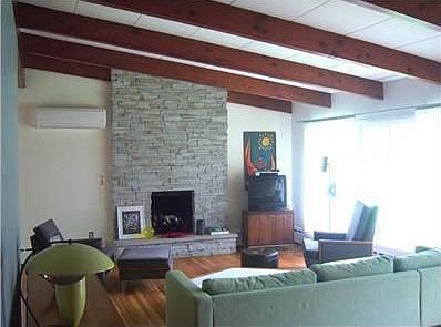 Step inside and be AMAZED by this dramatic, stylish ranch home. Open floor plan, vaulted ceilings with exposed beams. Custom fireplace, formal dining room and retro kitchen. Eclectic master bath.