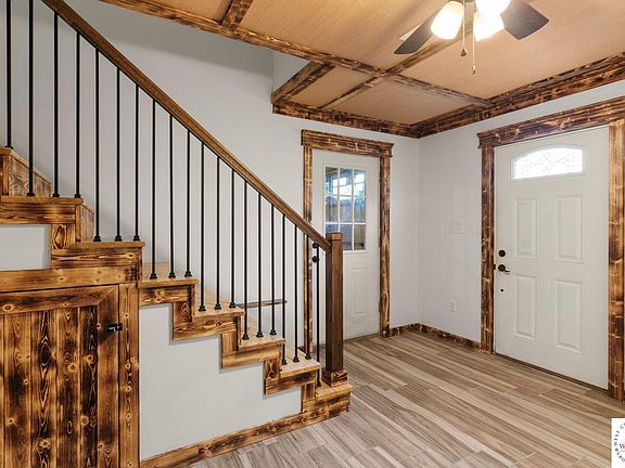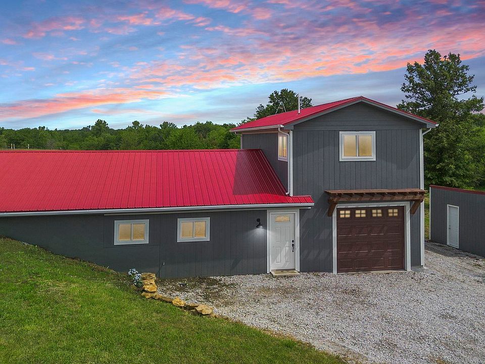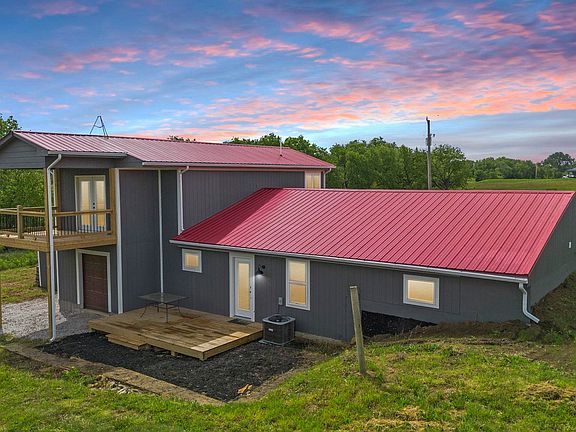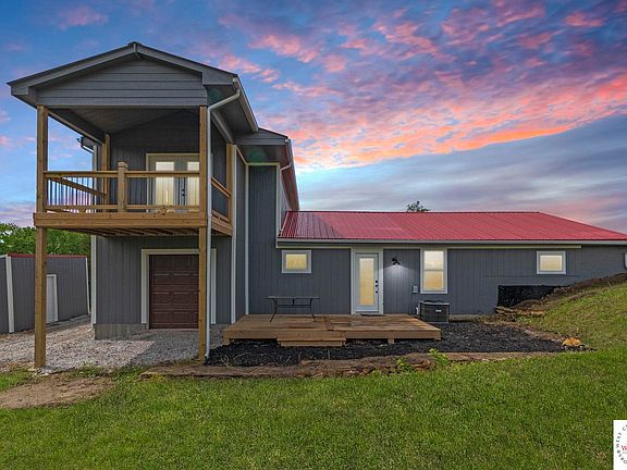 Welcome to your ideal home in Holden, MO! This newly completed gem sits on nearly 9 acres of scenic beauty, revealing a perfect balance of modern comfort and rustic charm. Step inside to discover an impeccably designed interior featuring hand-burnt pine trim throughout, creating a cozy ambiance that welcomes you home. The spacious living area offers high ceilings adorned with hand-burnt pine crossbeams, enhanced by unique ceiling fans and light fixtures that add character to every room. The heart of the home is the exquisite kitchen, featuring a handcrafted island topped with local pecan wood, quartz countertops, and matching cabinetry. Upstairs, retreat to the luxurious master suite, complete with a custom made second story deck overlooking the scenic landscape. The ensuite bathroom is a sanctuary of relaxation, featuring a beautiful tiled shower, a soaking tub, and a dazzling crystal chandelier, perfect for unwinding after a long day. Outside, the property offers a tandem two-car garage with a pass-through to the rear, perfect for storing lawn equipment or UTVs. A rear deck for those quiet morning coffee and chats. Additionally, an outbuilding/shed provides extra space for your storage needs. This corner lot property produces minimal traffic, surrounded by beautiful farmland, mixed pasture, and timber. The land is completely fenced, except for the area just in front of the house. Plus, a tranquil wet weather creek runs through the property, adding to its natural allure in most seasons! Conveniently located less than an hour from Kansas City Metro, this home offers both serenity and accessibility. Don't miss your chance to experience the ultimate in country living. Schedule your private tour today!