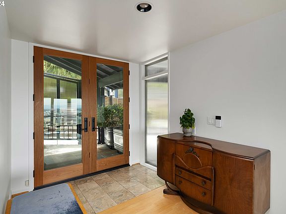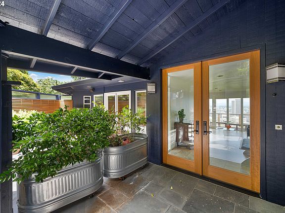 If you have been searching for a smaller NW Contemporary home with a city view, you have found it! Ideal condo alternative without the HOA dues. This updated residence is situated on a quiet street in desirable Portland Heights neighborhood. The interior has been freshly painted with a neutral palette, ready to make it your own. Inviting with modern design throughout, open floor plan, lots of natural light with wall of windows that captures the beauty from sunrise to sunset. Multiple outdoor areas for dining and room for urban gardening. Chef's kitchen equipped with newer refrigerator/dishwasher. Home office offers inspiring space for working and exercising, overlooking the city, river, and Mt. St. Helens. Primary suite includes en-suite bathroom, and deck with city view. Easy walk to popular Farmers Market, quick commute to OHSU, Alphabet District for shopping and dining, and Sunset Highway. Features include wood floors, exterior paint 2022, interior paint 2024, oversize 2 car garage, tankless water heater 2024, electronically controlled projector screen for movie night in living room. Home energy score 7!