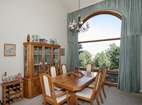 Lovely home in Skyway Heights with superb views of the mountains, Garden of the Gods and the city. Grand entrance with a curved staircase, open floor plan with soaring two story living room, dining room and dramatic windows. This is a wonderful home for entertaining in the gourmet kitchen that has slab granite counters and center island with downdraft range top. There are double ovens and a spacious breakfast nook leading into the family room with a walkout to the new back trex deck. The large master suite is built for your privacy and comfort with a 3 sided gas log fireplace between the bedroom and spacious 5 piece bathroom with great views of the city. The current owners have made some wonderful improvements; Newly updated main level half bath, new roof (wind & hail rated re insurance), Hunter Douglas window blinds (living & dining rooms), heat resistant window tint (large window above the master bathtub, dining room window arch, and living room window arch), central A/C, backyard landscaping, family room gas fireplace. This is a Vantage home in a great D12 neighborhood. Easy access to the trails of Bear Creek, N Cheyenne Canon and Stratton within a short distance to enjoy.