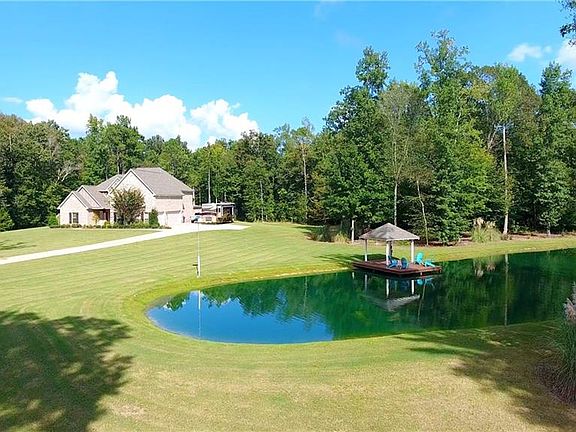 Exquisitely built home nestled on 63 wooded acres features gated entrance, stocked pond w/gazebo, fountain, Chubbehatchee Creek running through the property, detached Man Cave, salt water pool, 3 car attached garage, & a 4 bay 2000 sq ft barn for all your outdoor toys. Main house features open formal dining rm, coffered ceiling & wood floors, large great rm w/fireplace, surround sound. Open kitchen offers gorgeous exotic granite counter tops, tounge & grove ceiling, ss Jenn Air appliances, gas cook top w/pot filler, prep sink in work island, open casual dining area. Master suite is spacious & offers a large walk in closet, en suite laundry center, & spa like bath. Guest suite downstairs w/full bath. Upstairs offers a 2nd laundry room, 3 graciously sized guest bedrooms, & a home theater to envy w/120 inch rear projection TV & surround sound. Detached man cave is perfect for watching football w/friends or room for extra guest w/full bath. Trails running through the property make it easy to enjoy & maneuver by ATV, & several feeders & blinds already in place. Home offers spray foam insulation, home security, sprinkler system, screened porch w/outdoor fireplace is over 400 sq ft great for entertaining, open pergola for lounging by the pool, too many upgrades to name make your appointment today.