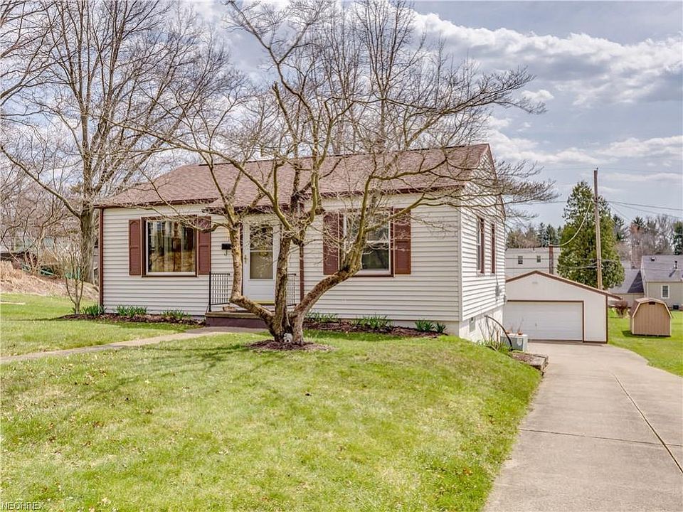 Welcome to 1035 Stuart St NW in Jackson local school district. Enter into the living room with hard wood floors and 8ft ceilings. Newer windows through out home. Built in cupboards in the hall add storage and charm to this home. Full bath with pedastal sink and cabinets. The two bedrooms have hardwood floors and ceiling fans. Both are spacious. The kitchen over looks the backyard and has ample cupboards and all appliances stay. The lower level is a walk out to the backyard and detached 2 car garage. The partially finished lower level is large and has lots of potential. Storage is available or use it for a hobby room. Enter through a door into a very nice, clean laundry/utility room that also contains a utility sink, stand up shower and commode. The furnace has an air filtration system/humidifier. CO detector and dehumidifier stay with the home. This street is wired for att&t fiber internet and is available in this home. This is such a cute neighborhood and street. Schedule your showing because this home wont last long in Jackson Township.
