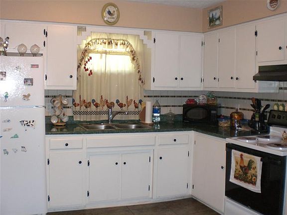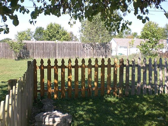 Nice two bedroom with very nice large bath, large eat in kitchen, stove and refrigerator stay with home, fenced in back yard plus storage building covered front porch deck on back.