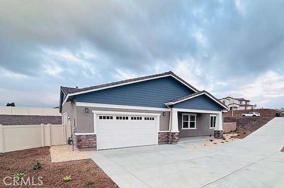 QUICK MOVE-IN HOME!! Brand New Energy Star Home in Alesandro Heights! This gorgeous single level home provides a great use of space and flow. A home office space off the entry provides a place to focus on work and allows the ability to step out to the spacious covered porch for a break. The Great Room, Dining, and Kitchen areas are bright and opens to the rear covered patio area to enjoy outdoor dining and entertaining with a view! The Primary Bedroom is privately located and includes a large bath and closet space. Enjoy all the benefits of building a brand-new Beazer home – Energy Star, Indoor Air Plus Certified, Third Party Tested, HERS tested, and a 10/5/1 year Warranty. This home comes with all of the upgraded design features, Luxury vinyl plank flooring, upgraded carpet and pad, white cabinetry with black matte hardware and faucets, textured white tile backsplash and more! Please note - pictures are of model home. This home is completed and ready for you!!
