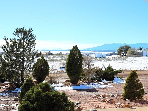 Very nice well maintained home with just one owner! You will love the Greenhorn and Spanish Peak Views from the front of the home and Pikes Peak views from the rear. The large covered from porch welcomes you into this lovely home with an open great room concept featuring beautifully cared for hardwood floors in the spacious living room, dining room, kitchen and hallways. Great floorplan with a split bedroom design and main level laundry with tile and shelving! The primary suite has a 5 piece bath and big walk-in closet. There is a large family room in the basement with a free standing gas stove and plenty of unfinished area for storage or additional bedrooms and it is plumbed for the 3rd bathroom. The rear of the home has a covered patio and this home sits on 1.53 of an acre.