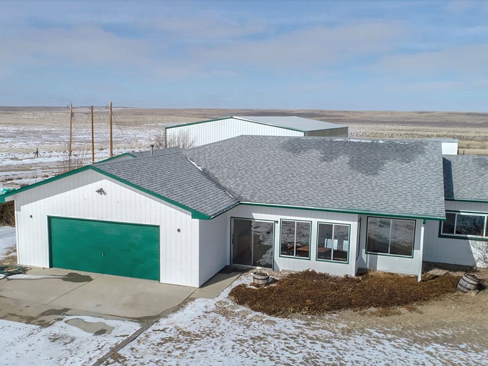 Rare find: residential rural property with over 123 acres. 34 acres irrigated with a side roll! Irrigation feeds a pond on the property. Over 1300+ sq ft home with room to expand!! HUGE living room, enclosed sun porch and a 2 car garage. Home features new triple pane windows, roof & newer flooring. Amazing 60x100 steel building could be used as a shop or an indoor riding arena. Several other structures such as loafing shed, 2 car shop etc. CITY WATER TO THE HOUSE through 33 mile water district.