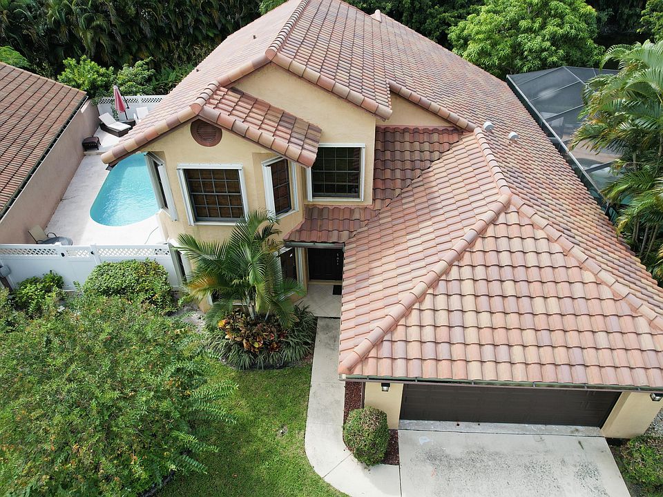 Can be rented RIGHT AWAY! Roof 2012. This desirable floor plan offers a formal living room, formal dining room, main bedroom on the first floor, vaulted ceilings, remodeled kitchen with S/S appliances & breakfast counter, loft area, screened patio w/ tavertine pavers, private pool and fenced yard & hurricane protection, partial impact windows. T. 2 large bedrooms upstairs Pool has newer diamond brite finish, pool tile, salt system& heat pump. All A-Rated Schools, Community center features Pickle Ball Courts a Jr Olympic Heated pool for winter, soccer, fitness center tennis & basketball. If having all A+ rated schools isn't enough you are walking distance from Burt Aaronson South County Regional Park