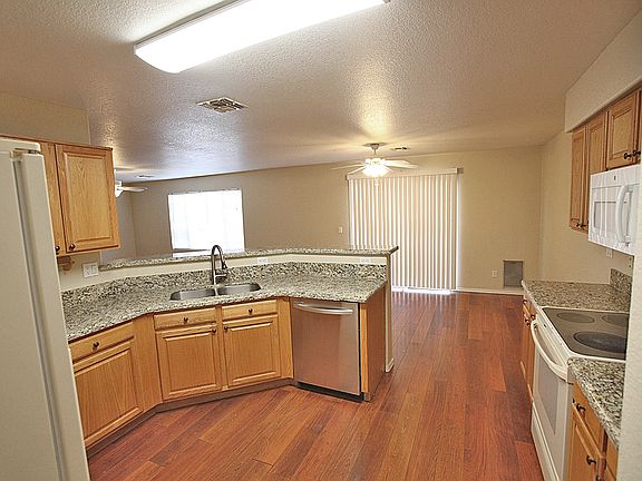 HUGE 3 Bedroom + 2 Bathroom! Gorgeous home! Laminate Wood Flooring throughout with Refrigerator, Microwave, Range, and Dishwasher included. Vaulted ceilings with beautiful ceiling fans in Formal Living Room. Master suite features walk-in closet and shower, bathtub, private toilet room. RV gate with extra concrete work and Storage Shed. 2 car garage with opener, covered patio, sunscreens. Home is minutes from shopping, restaurants, schools, Loop 101 and I-10.