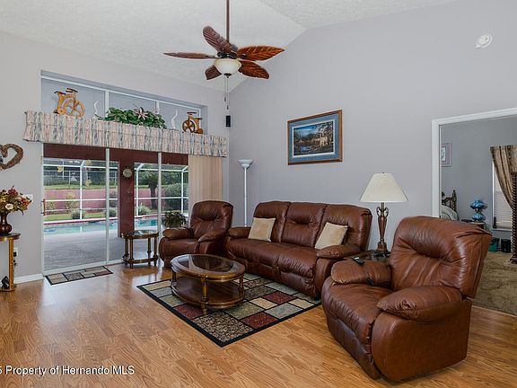 Recently Reduced to 345,900.00! Sellers Showing Their Motivated at This Price! Extremely Well Maintained and Cared for 3 Bedroom, 2 Full Bath and an Oversized 2 Car Garage. Located in The Very Desirable Links at Seven Hills Subdivision. Features and Upgrades Include a Generac Whole House Generator System! This Home Also Features the Ever Popular Open Kitchen to Dining Room to Open Family Room Styled Floorplan. High Ceilings, Wood Laminate Flooring and a Custom Designed Larger Kitchen Offers Beautiful Granite Counter Tops, Lots of Cabinetry Storage, Wood Laminate Flooring, Quality Appliance Package and Offers Easy Access to the Eat In Kitchen Area and Dining Room. Larger Primary Suite Offers His and Hers Closets and a Custom Designed En-Suite Which Boasts Lots of Vanity Storage, Granite Counter Tops His and Hers Sinks, Granite Counter Tops and a Custom Tiled Glass Doored Walk-In Shower. Larger 2nd and 3rd Bedroom's Feature Built In Closets, Ceiling Fans and Offer Easy Access to the 2nd Remodeled (Pool Bath) Pool Bath, Triple Pocket Sling Glass Door From the Family Room and Double Sliders From the Primary Suite Offer Easy Access to the Spacious Screened In Lanai And Pool Area. Perfect for Family BBQ's and Entertaining. All Furnishings are Available For Sale! Best School District in All of Hernando With Access to Spring Hill's Top Magnet Schools. Close to Shopping, Banking, Restaurants and in Close Proximity to the Tampa General Hospitals and Medical Center and an Easy Drive to the Expansive YMCA Which Offers a Heated Olympic Style Swimming Pool, Well Equipped Full Sized Gym and Lots of Family and Adult Classes and Clubs. Low HOA of Only 255.51 a Year and No CDD's!