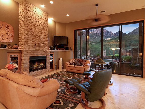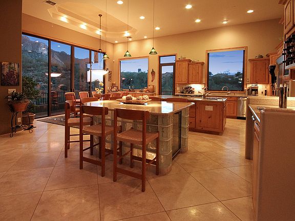 Beautiful Custom home with Southwest Contemporary design located a 1.18ac private lot designed to capture majestic views from every room. Great Room is open to the Kitchen and Dining Area, w/floor to ceiling stacked stone gas fireplace and and a custom, glass block (lighted) seating/bar area. Two Master Bedrooms on main floor, plus two Guest Bedrooms and bath on lower level. SS Appliances incl a 2x tap beer refrig, Dacor Oven, Microwave, and 5 burner gas Cook Top w/Downdraft exhaust, Fisher Paykel double drawer dishwasher, KitchenAide 42'' built-in refrigerator-freezer, Trash Compactor, and Wine Cooler. 3 Zoned Trane HVAC, 75 gal Hot Water w/recirc system, and Water Softner. Dumbwaiter Lift from 3-Car garage to Main Floor. Walk-In Glass Block Shower and Jetted Tub in Main Master. Much More