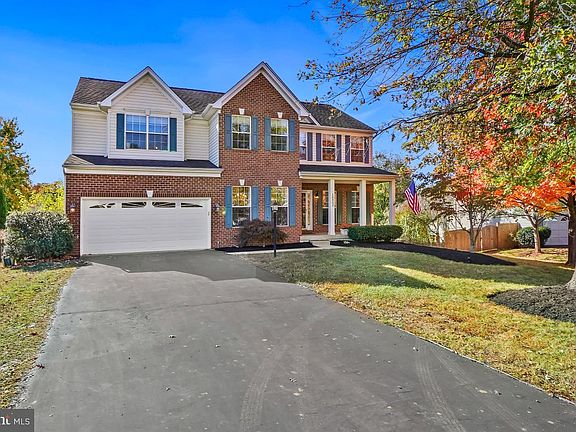 Lovingly cared for by original owners! Brick Front 4 Bedroom Colonial with a Main Level Full Bath and Study. Chef's Dream Kitchen with Newer Kitchen Aid Stainless Steel Appliances, Giant Island, Abundant Storage. Eat in Dining Area opens to Large Deck with New Wood Flooring and Painted Railings. Kitchen is also Open to the 2 Level Family Room with Wood Burning Fireplace and New Carpet. Lovely Dining Room with Crown Molding and Chair Rail and Living Room. Professionally Painted Throughout. 4 Upper Bedrooms and 2 Baths. Unfinished 1500 ft Basement with Walkout and Full Size Windows. Fully Fenced BackYard, Attached 2 Car Garage, Recently Sealed Driveway, New Deck Flooring .Come watch the kids from your Front Porch. Quiet Cul-de Sac. Optional Office could easily be used as Main Level Bedroom with adjacent Full Bath and Closet.