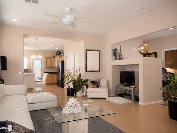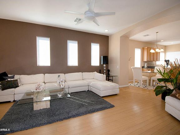 Come check out this well maintained and upgraded home! This home offers an open and spacious great room floor-plan! Enjoy the wood flooring throughout, upgraded ceiling fans, full-length covered patio, fully landscaped rear yard, separate laundry room, and a solar hot water heater. The master bedroom is very large and is upgraded with a bay window. Master bathroom boasts a separate shower / soaker tub, double sink vanity, and a walk-in closet! This home is in turn key condition, has not neighbors to the rear, mountain views, community center, community pool, multiple parks, and beautiful walking trails with a low monthly HOA.