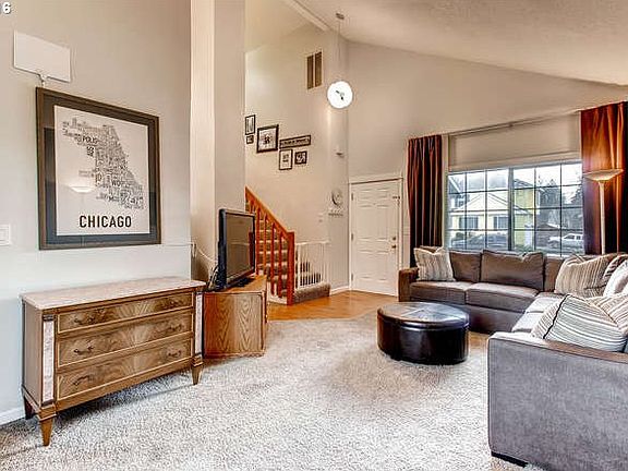 Beautiful, move-in ready home in desirable Tigard! Circular floorplan downstairs with large living room with soaring vaulted ceilings! Kitchen features granite tile counters, ss gas appliances, and charming breakfast nook with bay window seating & built-in storage! Kitchen opens to living room/den area with sliders opening to lovely brick paver patio, and level and fully-fenced backyard. This must-see home won't last!