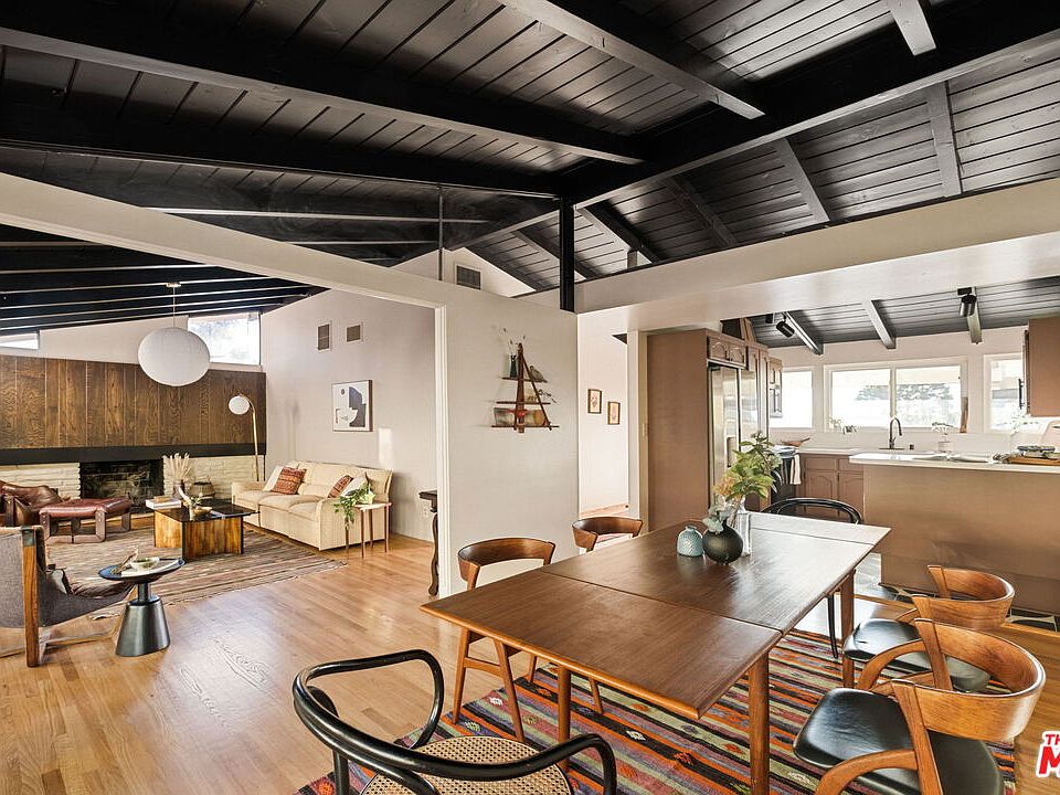 Nestled on a quiet street with sweeping views of the majestic Verdugo Mountains is this beloved 1956 Mid-Century in the verdant Crescenta Valley. Situated in Tujunga's most desirable neighborhood, between gorgeous Deukmejian Wilderness Park and vibrant shops and eateries on Foothill, this striking architectural beauty is one you won't soon forget. Picturesque and photogenic, it's surrounded by the grand Verdugos, visible from much of the home. Carefully restored over the last 3 years, it features vaulted beamed ceilings, original wood floors, a dramatic living room with walls of glass, vintage built-ins and a wood paneled fireplace. Light streams through the numerous clerestory windows which bathe the home in natural light. Off the living room is the primary bedroom with mountain views and an en-suite bath with a built-in walnut cabinet. The thoughtfully updated kitchen with a dishwasher offers more panoramic vistas and an adjoining laundry room would make a perfect walk-in pantry. Open and airy, the dining room is a feast for the senses the looks out to the roomy backyard and a magnificent 100-year-old Oak tree. Beyond the main living spaces at the end of the hallway are two additional bedrooms and a full guest bath. Other updates completed with permits include a new roof, 200-amp electric panel, copper plumbing and owned solar panels that will be transferred to the new lucky owners. Minutes to hiking trails, woodlands, Downtown La Crescenta, Montrose, La Canada and Glendale, this splendid beauty eagerly awaits the arrival of her next adoring guardians.