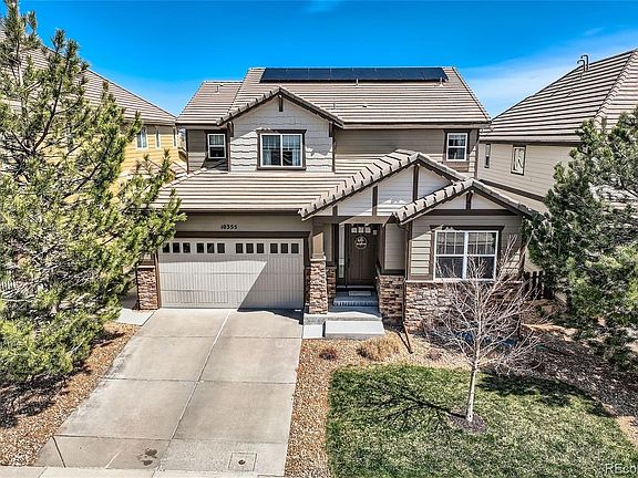 LOCATION, LOCATION, LOCATION! This gorgeous Meridian Village home boasts OVER $110k IN RECENT UPGRADES, fantastic cul-de-sac lot backing to a small greenbelt w views of the open spaces to both sides, professionally finished WALK-OUT BASEMENT, tons of natural light, 5 beds/ 5 bath & only steps to the pool & park area for extreme convenience. This home is truly an entertainers dream & has been meticulously maintained & UPDATED THROUGHOUT. The main level includes hand scraped wood floors, private dedicated office w French glass inlay doors, formal living & dining rooms, huge family room (w custom feature wall and stone fireplace), gourmet kitchen & wide open sight lines. Gather & prepare a meal in this amazing kitchen featuring high-end stainless appliances, gas cooktop, double wall ovens, 42” maple cabs, center island, slab granite & tile backsplash. The upper level includes 4 beds/ 3 baths so all bedrooms have direct access to a bath. The peaceful primary suite has a completely updated 5 piece en-suite w dual sinks & beautiful custom tile work. Don’t miss the massive walk-in w custom built-in closet space! All baths have been renovated! Wow, the walk-out basement is an absolute SHOW STOPPER! Amazing media room w stack stone feature wall & modern backlit fireplace, mounted TV and built-in surround sound & all sound/TV equipment in this area included. Custom built wet bar w matching stack tone, bar fridge & microwave. Additional game area perfect for a pool table & play area allowing for easy conversion to a 6th bed if needed. The guest suite & full bath are the perfect place to house friends or family for their visits. No detail was spared in the design & execution of this space! FULLY PAID-OFF SOLAR SYSTEM CREATES GREAT VALUE & BENEFIT OF NO ELECTRIC BILLS! The large back covered deck is the perfect place for evening meals or morning coffee. Meridian’s location allows for amazing highway access to all south side routes, Light Rail, Park Meadows and only 27 min to DIA
