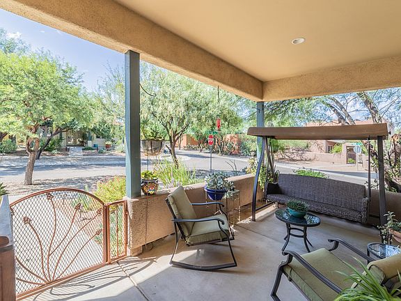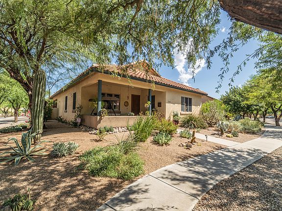 This beautiful University Style 1834 sq ft. 3 BR/2 BA home on a gorgeous large corner lot with amazing landscaping is not to be missed! One of the most popular floor plans in Civano, this home offers a spacious flow between the Great Room, large kitchen (with tons of cabinet and countertop space) and formal dining areas, 3 LARGE bedrooms, 2 well-planned bathrooms, and ceramic tile throughout. THREE covered porches provide striking versatility to enjoy your outdoor oasis, complete with flagstone, brick pavers, enclosed porch off dining area, water fountain, and fire pit. Yard also features 5 fruit trees: mature peach, lime, lemon, fig, and pineapple-guava. Steel frame construction and dual-pane Anderson Windows reflect the quality of construction. Be sure and check out all photos.