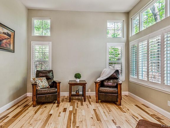 Amazing spa. This just may be your "dream house". Situated in the middle of a cul-de-sac. Enjoy your friends and family on the massive deck surrounded by trees and a hot tub. Lots of space for barbequing and socializing. The basement is finished with a family room, exercise area, bedroom and bath. The exterior and interior have been painted, new solid hardwood throughout main floor, new carpet upstairs, new gutters. All windows have been replaced. The garage is a man's dream with walls of slatboards to hang everything. Store your lawn equipment in the attached storage area that was added by the homeowner. This home is both warm and sophisticated. Close to Pine Grove Elementary. Easy walk to pools and tennis courts. Close commute to C470 and Tech Center.