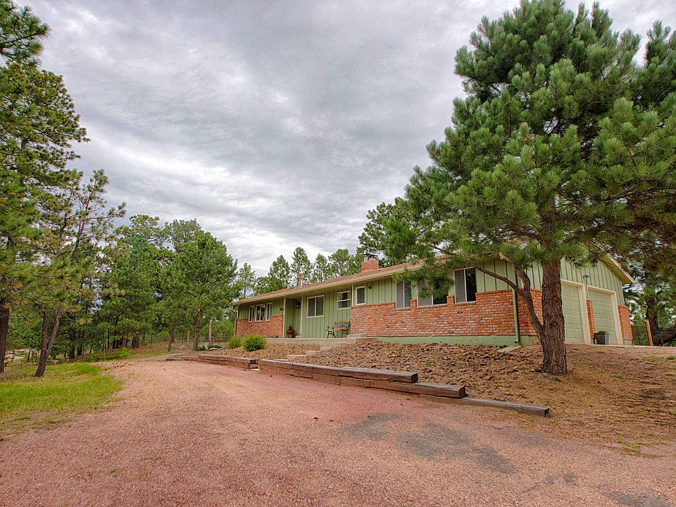 Great home on the edge of Black Forrest, you can live in the country with the amenities of the city. Main level living with tons of updates throughout. 2.77 acres of fenced land zoned for horses, no home owners association, fenced children's play area and loafing/storage shed. 45' x 16' RV Pad with all water/sewer and electric hookups. You will love the sun porch with tons of windows, open great room with a gas fireplace, and all hardwoods. Kitchen has newer stainless appliances and granite throughout. Go downstairs to a HUGE basement with a updated bathroom, new carpet and a wood burning fireplace. Don't miss this home, it is a great opportunity to live on a slice of paradise:)