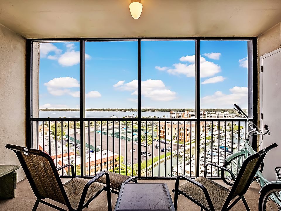SHOWS LIKE A PENTHOUSE MODEL . Above it all. Better Hurry! A beautifully updated one bedroom with breathtaking penthouse picture views. A window of opportunity for the buyer looking for a bright and breezy updated condominium in Treasure Island. An open floor plan with a screened balcony looking out over the water, the night lights of St Pete & a front row seat to the yearly Boat Parade. "Nicely updated." Newer electrical box with new grounded receptacles. Granite counters, custom tiles, beautiful updated full bath. All the amenities of Florida living. Heated pool, spa, outdoor dining with two deluxe gas grills, an upper sundeck, lighted fishing pier with running water, boat slips with accommodations are available for a small fee to the association, a luxury waterfront lounge, and a fitness area, are just some of the attributes. Plus ample guest parking and a car-wash area with electric. The building exterior was recently painted, the parking area was recently blacktopped, and a new awning over the front entrance. A door person is on duty seven days a week. This location is a small distance to the Treasure Island Beach. Included is a 13 month Home Warranty for additional peace of mind. The best of the best !