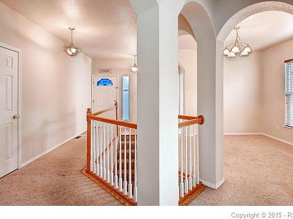 Beautiful ranch style home with 4 bedrooms and 3 baths. Over 3148 sqft. Beautiful ranch style 4 bedroom with 3 bath and 2 car garage in Meridian Ranch subdivision. Washer/Dryer in unit. Finished Basement and fenced backyard with patio and sprinkler system. School Dist 49. Sorry NO PETS on this property. Please call 719-591-8500 to schedule a showing. HOA rules and regs apply (RLNE2107645)