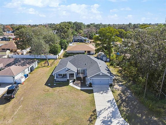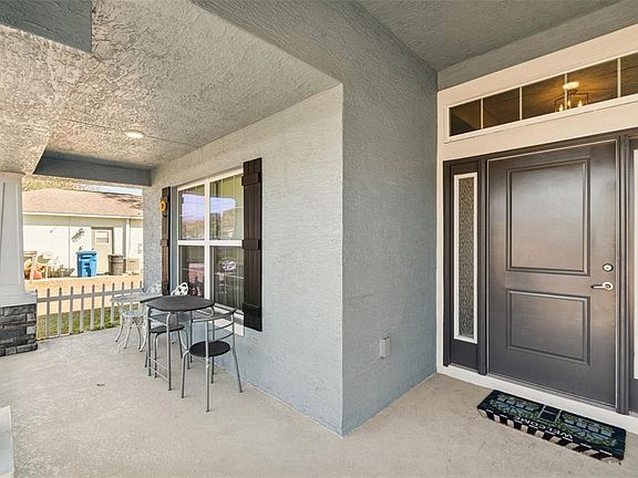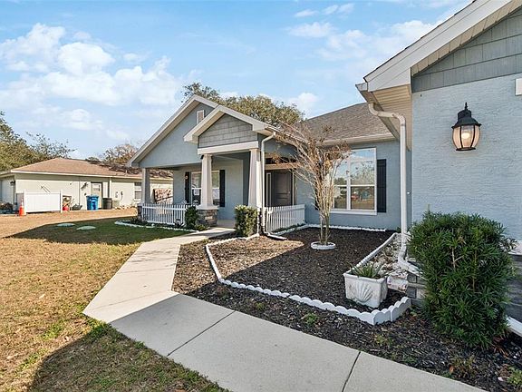 Welcome home to this beautiful 2020-built Craftsman-style elevation split plan offering approximately 2,300 square feet with 4 bedrooms, 3 full bathrooms, and a 2-car garage, all situated on nearly 1/3 of an acre. The inviting front porch adds great curb appeal and provides the perfect spot for a porch swing or a small table and chairs. Inside, the spacious family room opens seamlessly to the kitchen, creating an ideal layout for everyday living and entertaining. The kitchen features attractive cabinetry, stainless steel appliances, a large countertop with an eat-in bar area for stools, and a generous breakfast nook. Additional interior features include HD countertops with a beveled edge, rear door mini blinds, and a tray ceiling with crown molding in the primary bedroom. The primary suite is privately located on the rear left side of the home and offers excellent space and comfort, featuring his and hers walk-in closets and a well-appointed en-suite bath. The primary bathroom includes separate vanities, a large soaking tub, and a separate tiled shower with lighting. The home also offers three full bathrooms, each equipped with a tub/shower combination, providing convenience and flexibility for family or guests. Step outside to enjoy the covered, screened-in lanai with a ceiling fan, overlooking the backyard—perfect for relaxing year-round. A storage shed is also included with the sale, offering additional space for tools, equipment, or outdoor storage. Seller currently has a VA loan that may be assumable by a qualified buyer, subject to lender approval and required eligibility.