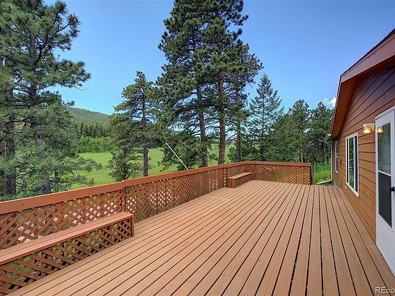 Whether you are looking for a first home, an easy home, or an investment property, this ranch style with main floor living fits the bill. Walk across the street to the 667 acres and 4.1 miles of trails for hiking, biking or horseback riding at Meyer Ranch Park. In the winter head over for cross country skiing or the sledding hill. Enjoy morning coffee or a summer dinner on your huge south facing deck and enjoy the view. A paved south facing driveway and super easy access to 285. At first glance you might wonder about road noise, but it's surprisingly low as you sit below the road rather than above it. Inside the house is quiet as a pin and that large deck is on the buffered side. The living area is an open floor plan and separates the guest bedrooms from the primary suite. All 3 bedrooms feature walk in closets. Bring your horses to the almost 2 acres of fenced, usable land. The 2 stall barn features 2 large storage/tack areas at either end. Electric at the barn, auto waterer included. The spigot at the barn is not connected, the well is household use only. Zoned A-2. Recent improvements include a new well pump (2021), newer gas stove (2020), newer dishwasher (2022), newer carpet (2022), new ceiling fan (2023), new kitchen sink (2023). Exterior features Hardy Board cement siding. 3 bedroom septic. Open House scheduled Saturday June 24 and Sunday June 25 11am - 2pm.