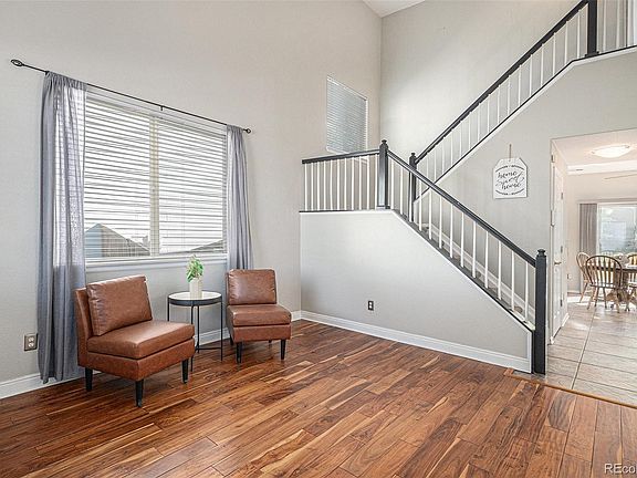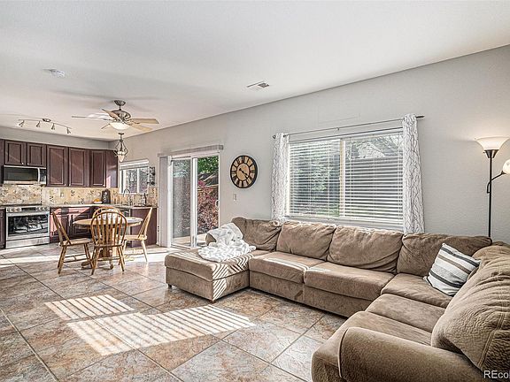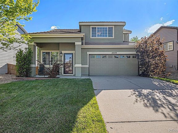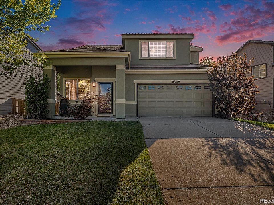 Welcome to 10359 Tracewood Drive, a beautifully updated 3-bedroom, 3-bath two-story home in the Hawks Point community of Highlands Ranch! This move-in ready residence features an open and functional main level that’s perfect for both relaxing and entertaining. The spacious living room showcases soaring vaulted ceilings, gleaming hardwood floors, and abundant natural light, creating a warm and welcoming atmosphere. The adjacent family room includes a cozy gas fireplace, offering a comfortable space to unwind. The updated kitchen is a chef’s dream—complete with brand-new stainless steel appliances, ample cabinet space, and eat in dining is ideal for cooking and gathering with family or friends. Upstairs, the primary suite is a true retreat: spacious, bright, and filled with natural light from a large picture window. The private en-suite bath features a soaking tub, dual vanities, and a generous walk-in closet, offering both luxury and functionality. Two additional upstairs bedrooms offer flexibility for guests, kids rooms, a home office, and more with spacious size, ample closet space, and easy access to a full bathroom. Convenient upstairs laundry includes washer & dryer. Step outside to your private backyard oasis—beautifully landscaped with mature trees, vibrant flower beds, and a lush lawn. A retractable awning provides comfortable shade for outdoor lounging or al fresco dining, making it the perfect spot for year-round enjoyment. Recent upgrades include a new storm door (June 2024), furnace (Oct. 2023), AC (Oct. 2023), and kitchen appliances (May 2024). The oversized 2-car attached garage provides generous space for both vehicles and storage. Located near top-rated schools, scenic trails, parks, and community amenities, this Highlands Ranch home offers the perfect blend of comfort, style, and convenience.
