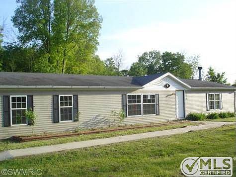 You will love this spacious 3 bed 2 full bath home sitting on 5 acres with a great location near the highway for an easy drive to Grand Rapids or Kalamazoo. Plenty of room for all your extras in the 24x32 ft pole barn, 16x20 workshop, 10x12 shed and 4 run in horse stall. All outbuildings have electricity. Aprox 3.5 acres fenced w/ 5 strand hot wire. Inside you will find a open floor plan with the kitchen, center island, eating area, family room and fireplace. Other side of home has a living room, master bedroom, walk in closet and a huge master bathroom. Two additional bedrooms with a second full bath finishes off this great home. Windows throughout the home are aprox 3 yrs old. Call today for your private showing. Seller reserves fence box, Seller to find home of choice