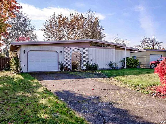 Accepted Offer with Contingencies. Cute 2 bedroom 1 bath home on a large lot. Mid century style. Vinyl windows. Roof approximately 8 years old. Kitchen with gas range. Living room has cozy gas stove. Don't miss the cabinet that holds the washer and dryer. Detached garage for extra storage. Enjoy the covered patio that overlooks the large back yard. Close to shopping, hwys, schools, and more.
