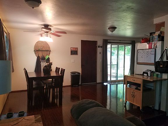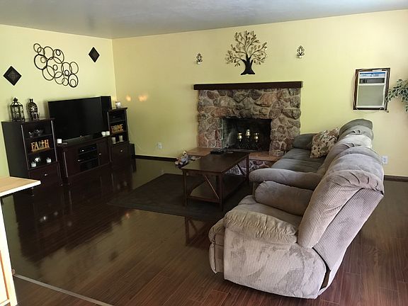 Super clean remodeled home, great floor plan w kitchen open to the dining area, laminate flooring throughout, formal living room with stone fireplace surround, fresh exterior paint, newer vinyl windows, new garage door, wood blinds, finished garage with laundry area, pedestrian door, built-in work bench, covered back patio, fully fenced yard, backs up to open field.